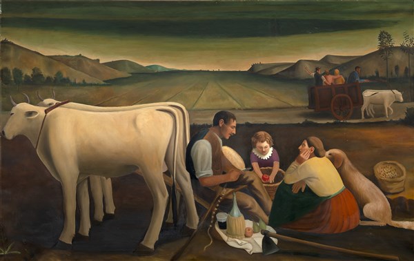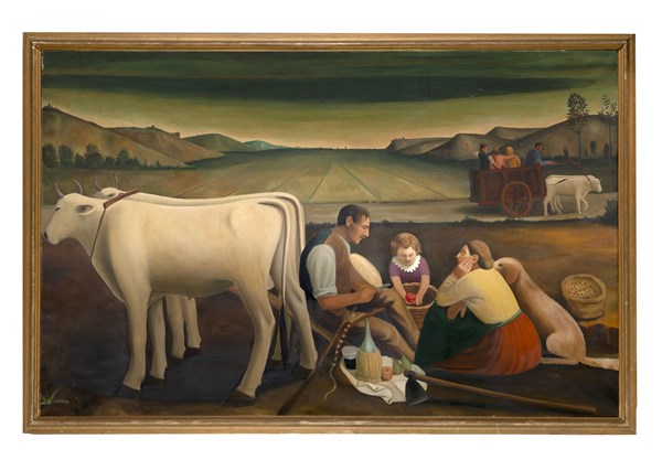 Gisberto Ceracchini "L'aratore" olio su tela (cm 119x188) Al retro: cartigli In