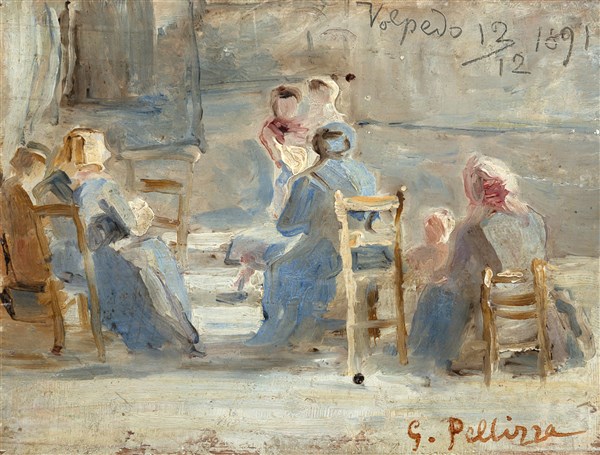 Giuseppe Pellizza da Volpedo "Conversazione" 1891 olio su tavola (cm 11x14,5) Lo