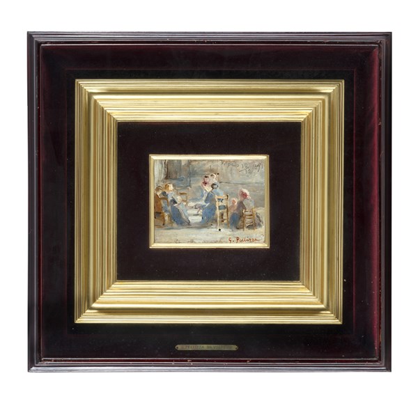 Lotto 538 | Giuseppe Pellizza da Volpedo "Conversazione" 1891 olio su tavola (cm 11x14,5) Lo