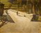 Luigi Zago "Il Ponte di Zogno, Val Brembana" 1928 olio su compensato (cm 100x120