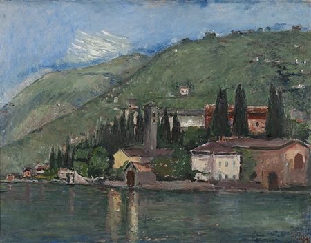 Arturo Tosi "Sul lago di Como" olio su tela (cm 70x90) Firmato in basso a destr