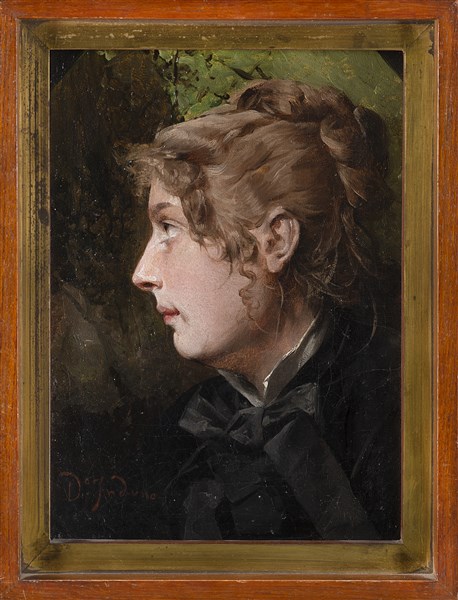 Domenico Induno "Ritratto di Emilia Trezzini" olio su tela (cm 23,5x17,5) Firma