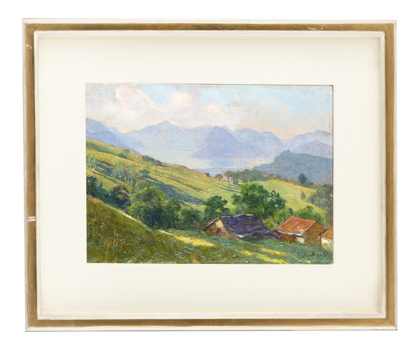 Luigi Rossi "Lago di Lugano" olio su tavola (cm 18x25,5) Firmato in basso a des