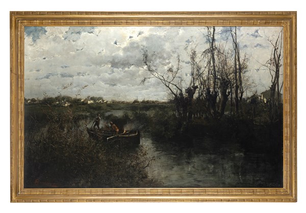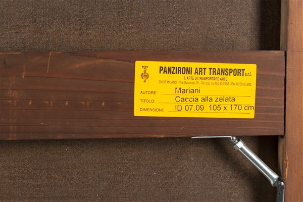 Pompeo Mariani "Caccia alla Zelata" olio su tela (cm 105,5x171) Firmato in bass