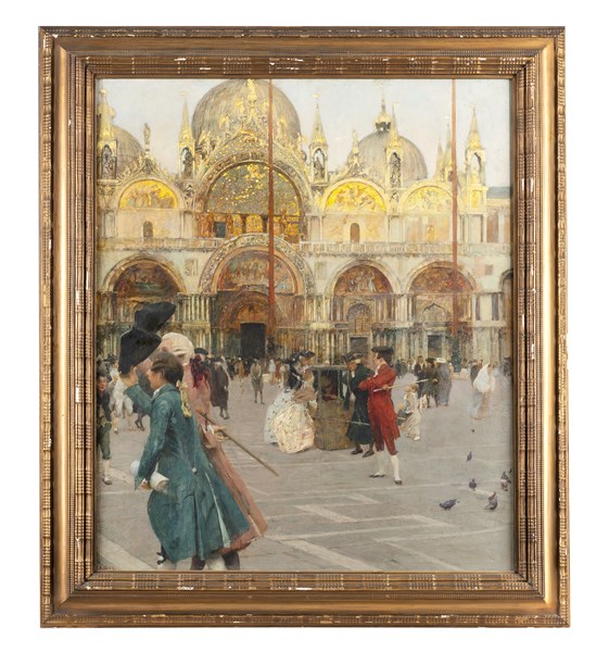 Ettore Tito "San Marco, scena settecentesca" '92 olio su tela (cm 87x73) Firmato