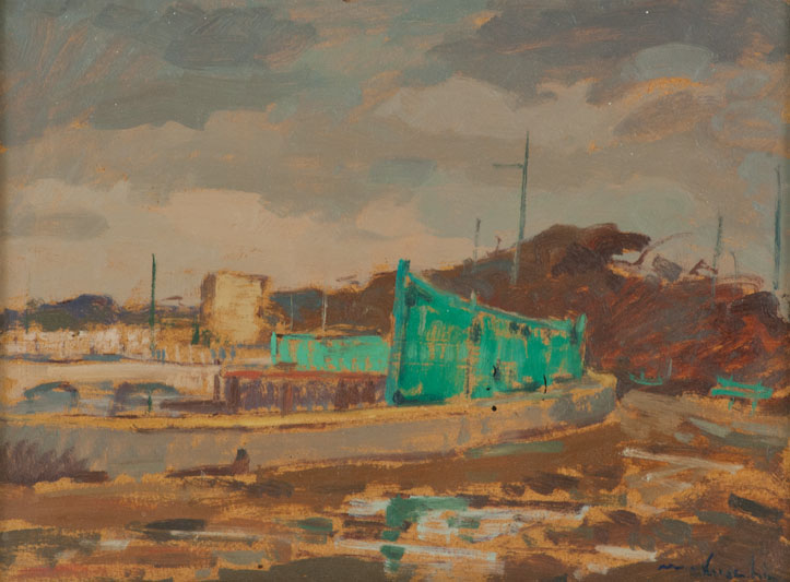 Masaniello Luschi Paesaggio, 1968 Olio su faesite, cm. 30x40 Firmato in basso a destra. Sul verso: firma e data.