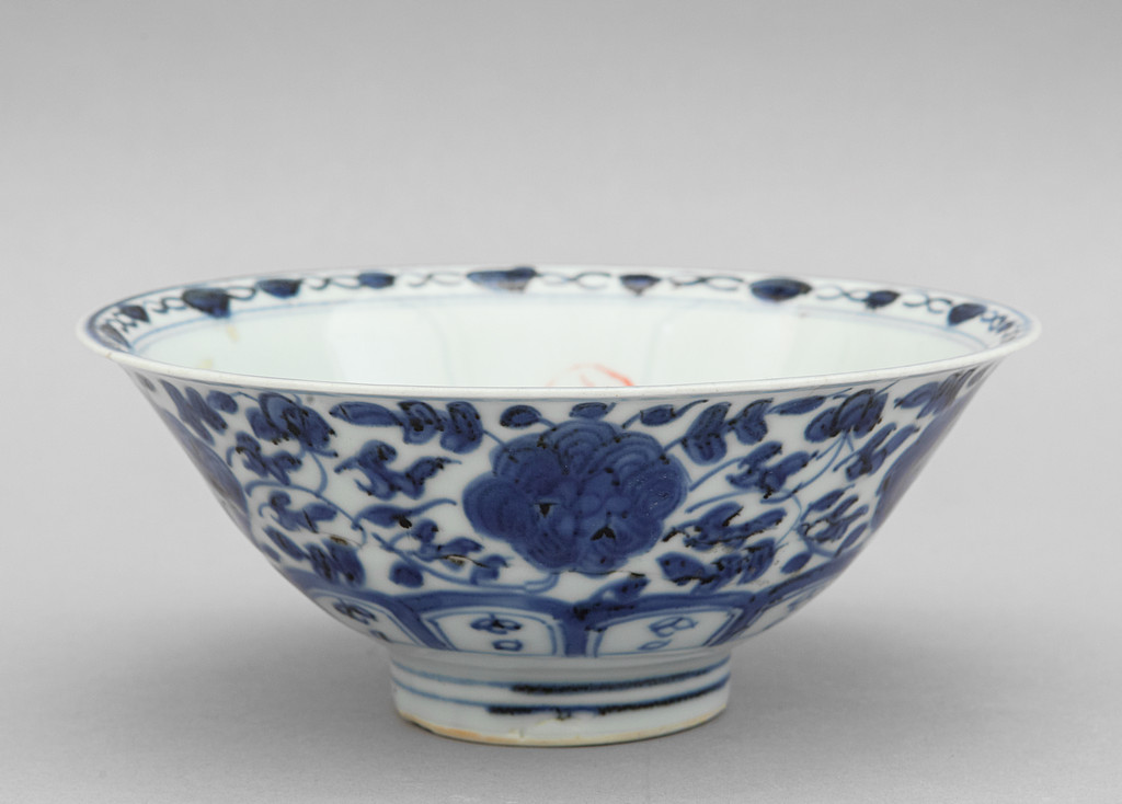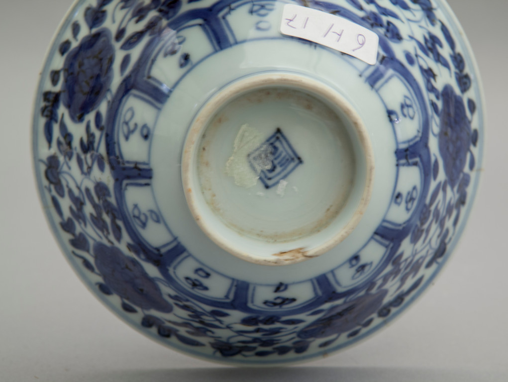 Coppa in porcellana decoro bianco e blu a motivo floreale Cina sec. XIX