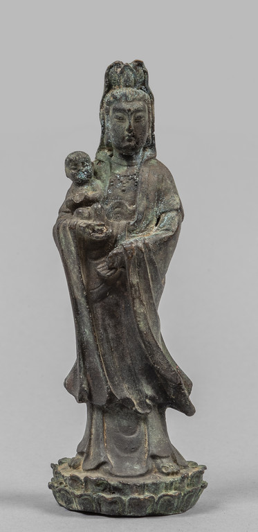 Juanin con bambino scultura in bronzo Cina inizi sec.XIX