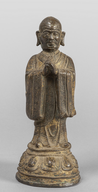 Buddha in piedi scultura in bronzo dorato a freddo Cina inizi sec.XVIII
