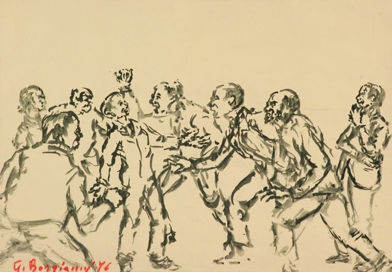 Guido Borgianni Figure, 1976 China acquerellata su carta, cm. 46x66 La carta presenta lievi imperfezioni. Firma e data in basso a sinistra.