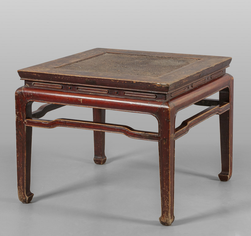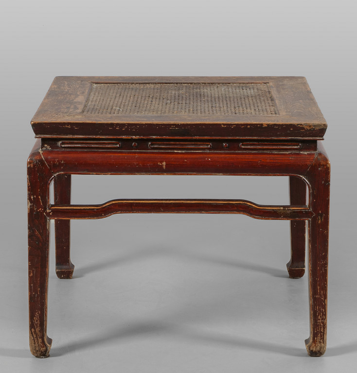 Tavolino basso di forma quadrata in massello di olmo ricoperto da laccatura originale di colore bruno Cina dinastia Quin fine sec.XVIII