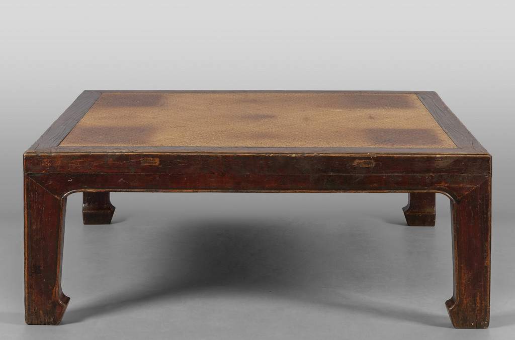 Tavolo basso di forma rettangolare in massello di olmo ricoperto da laccatura bruno rossiccia originale Dinastia Quing Cina fine sec.XVIII
