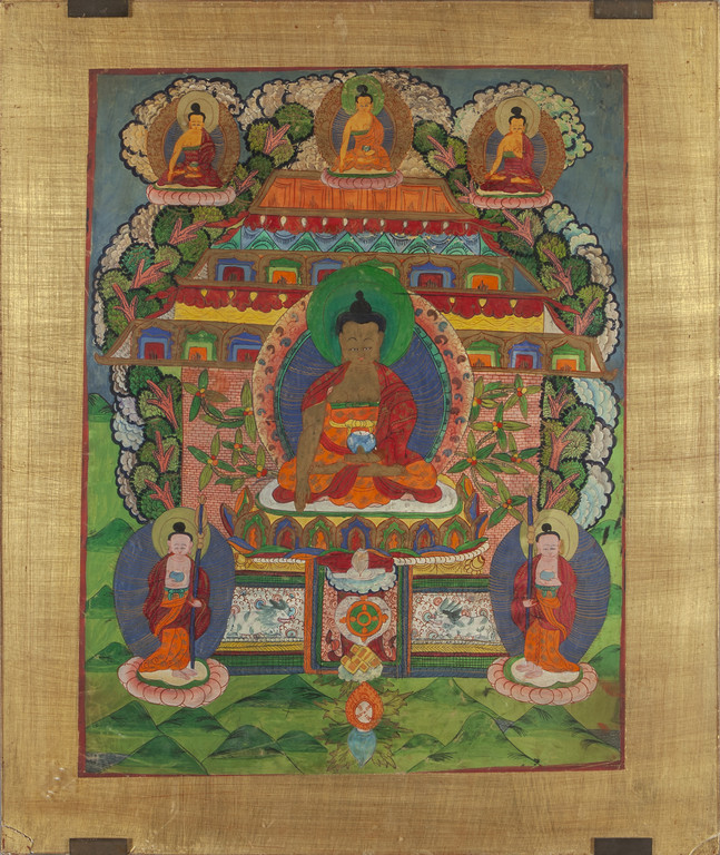 Tanka raffigurante il Buddha con cinque dignitari sec.XX
