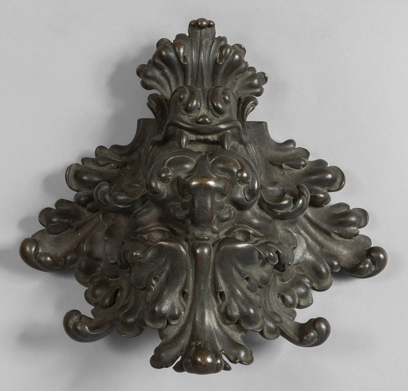 Mascherone a testa di leone in bronzo a patina scura sec.XIX