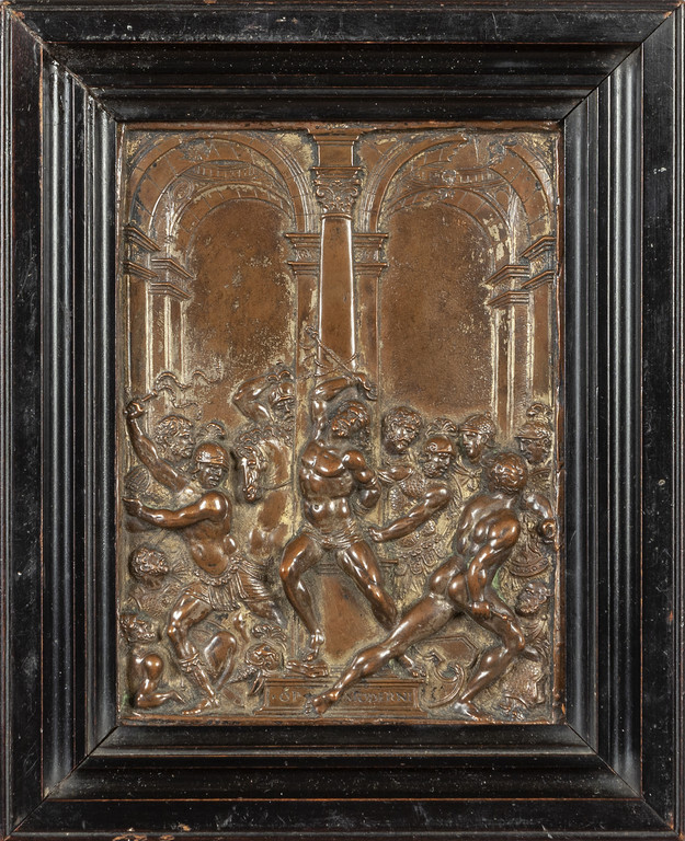 Flagellazione placca in rame sbalzato da un modello di Galeazzo Mondella detto il Moderno sec.XIX