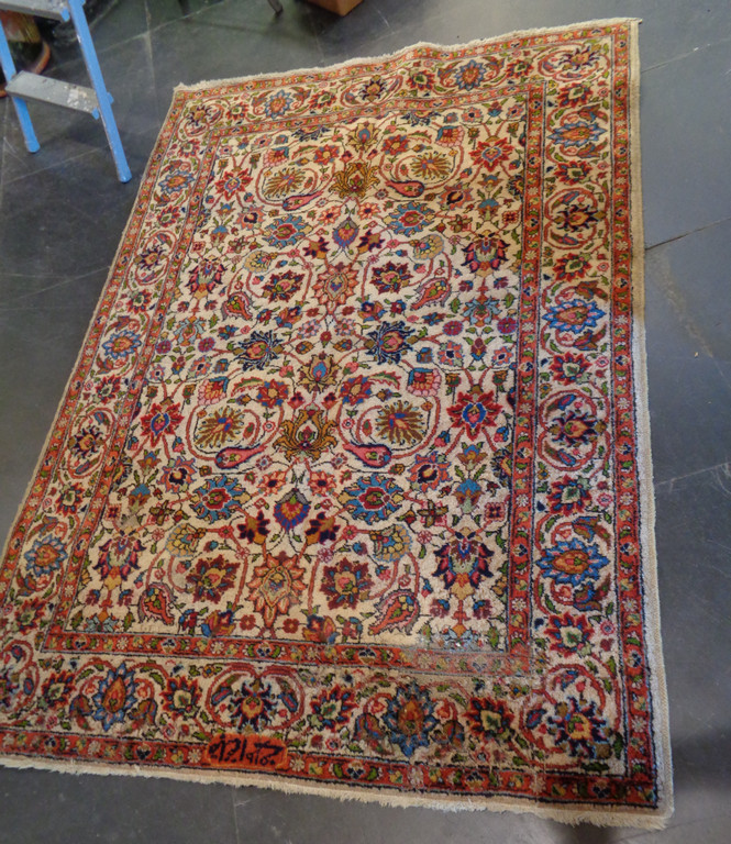 Tappeto persiano decorato a fiori su fondo chiaro (difetti)