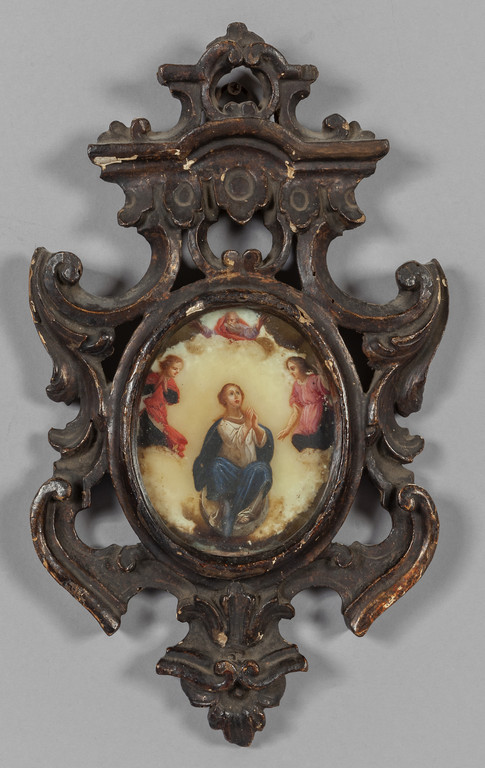 'L'Assunta' olio su onice cornice coeva in legno intagliato e laccato sec.XVIII