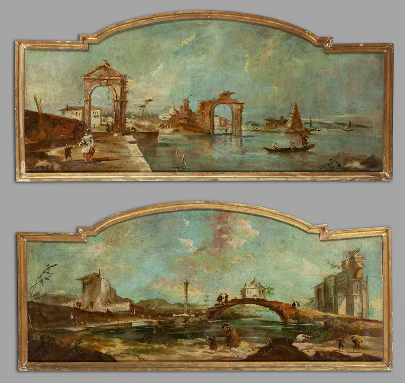 'Capricci veneziani' coppia di olii inizi sec.XIX provenienti dalla dimora di Leopoldo II Re del Belgio a Saint Jean Cap Ferrat