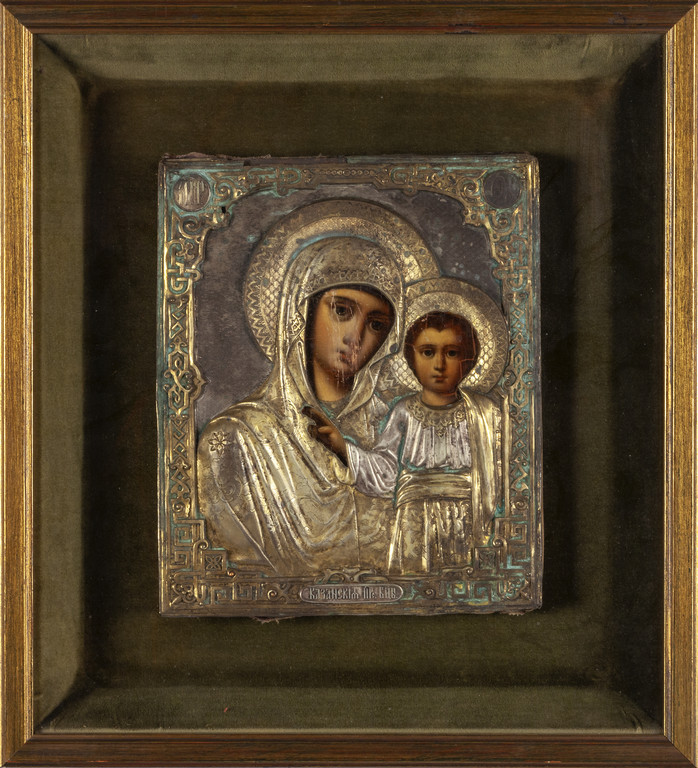 Madonna con Bambino icona con riza in metallo dorato sec.XIX