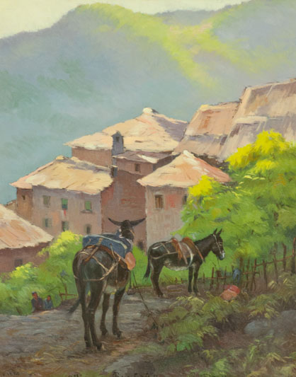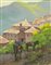 Piero Danti Case, San Marcello Pistoiese Olio su tavola, cm. 50x40 Firma in basso a sinistra, dedica a persona datata 1945 in basso al centro. Sul verso: titolo e bozzetto dell'opera.
