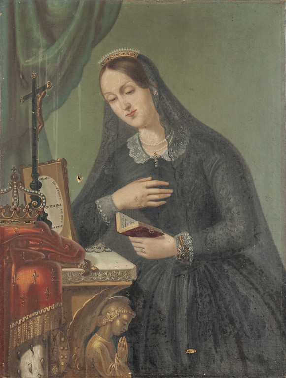 Precedente Lotto 0948 Successivo Aste Boetto - Via Mura dello Zerbino 10R, 16122 Genova Aste di Antiquariato e Arte Orientale Asta di Antiquariato e Arte Orientale giovedì 10 giugno 2021 ore 14:00 (UTC +01:00) DIPINTO 'Gentildonna in preghiera' olio sec.XIXcm. 83x100