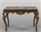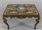 Tavolo basso in legno intagliato e laccato con figure sulle gambe piano in scagliola policroma inizi sec.XX