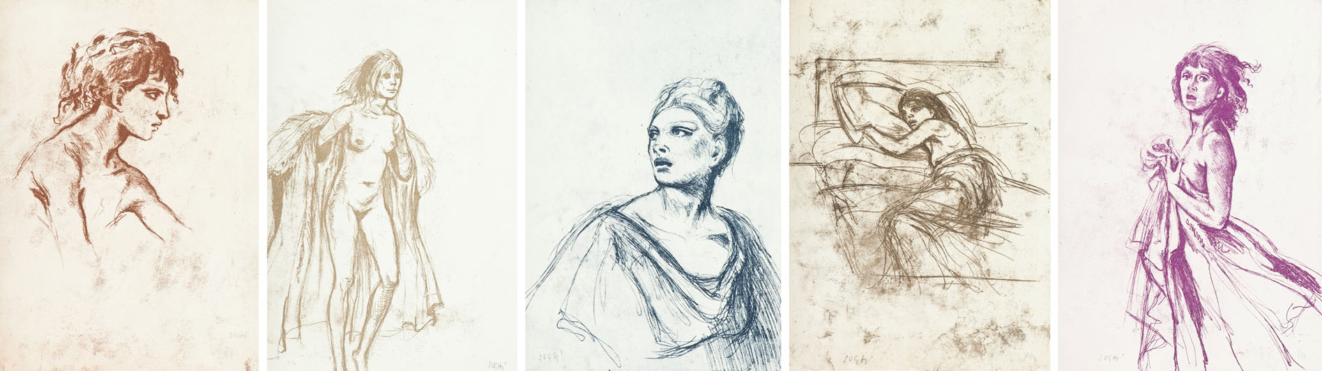 Alberto Sughi Lotto unico di cinque Opere Cinque acqueforti su carta di cm. 35x25, es. P.A., tutte firmate dall'Artista.