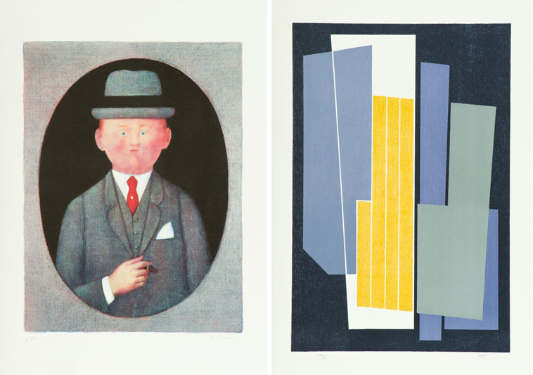 Bueno Antonio, Nativi Gualtiero Lotto unico di due Opere - "Antonio Bueno", Uomo con sigaro, Litografia su carta, cm. 70x50, es. P.A., firmato in basso a destra; - "Gualtiero Nativi", Senza titolo, Litografia su carta, cm. 70x50, es. XXI/L, firma in basso a destra, tiratura in basso a sinistra.