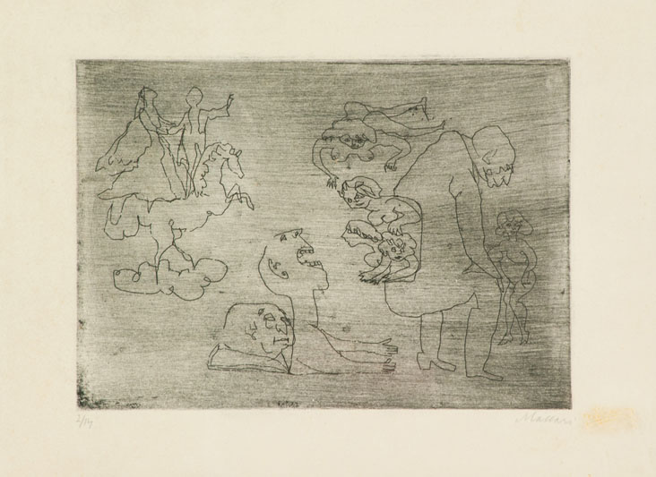 Mino Maccari Senza titolo Acquaforte di cm. 18x25, su carta di cm. 25x35, es. 2/14 Firma in basso a destra, tiratura in basso a sinistra.