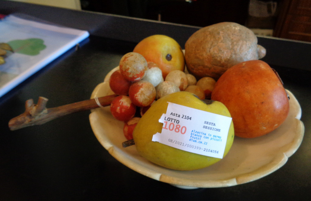 Precedente Lotto 1080 Successivo Aste Boetto - Via Mura dello Zerbino 10R, 16122 Genova Aste di Antiquariato e Arte Orientale Asta di Antiquariato e Arte Orientale giovedì 10 giugno 2021 ore 14:00 (UTC +01:00) OGGETTISTICA Alzatina in marmo bianco con piccoli fruttidiam.cm.22