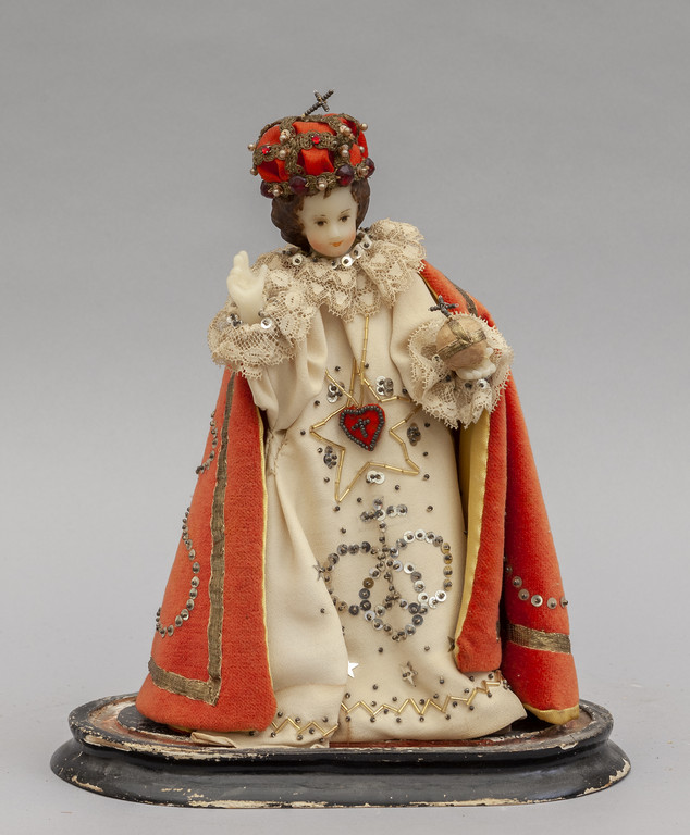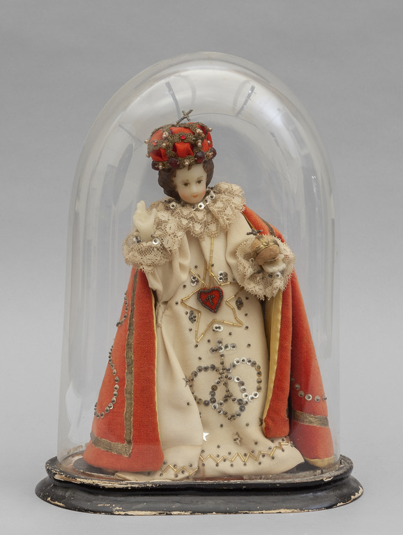 Bambin Gesù scultura in cera sec.XIX dentro teca in vetro