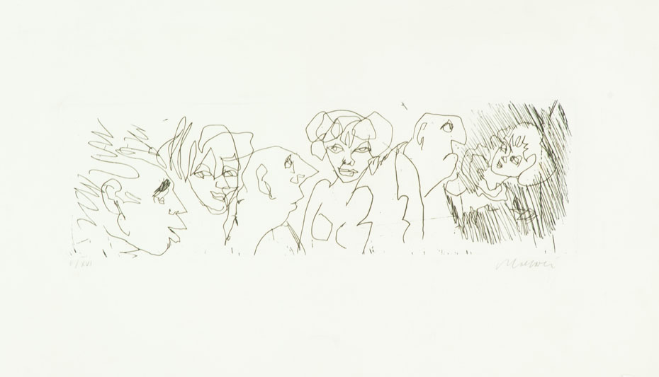 Mino Maccari Figure Acquaforte di cm. 15x50, su carta di cm. 50x70, es. II/XVI Firma in basso a destra, tiratura in basso a sinistra.