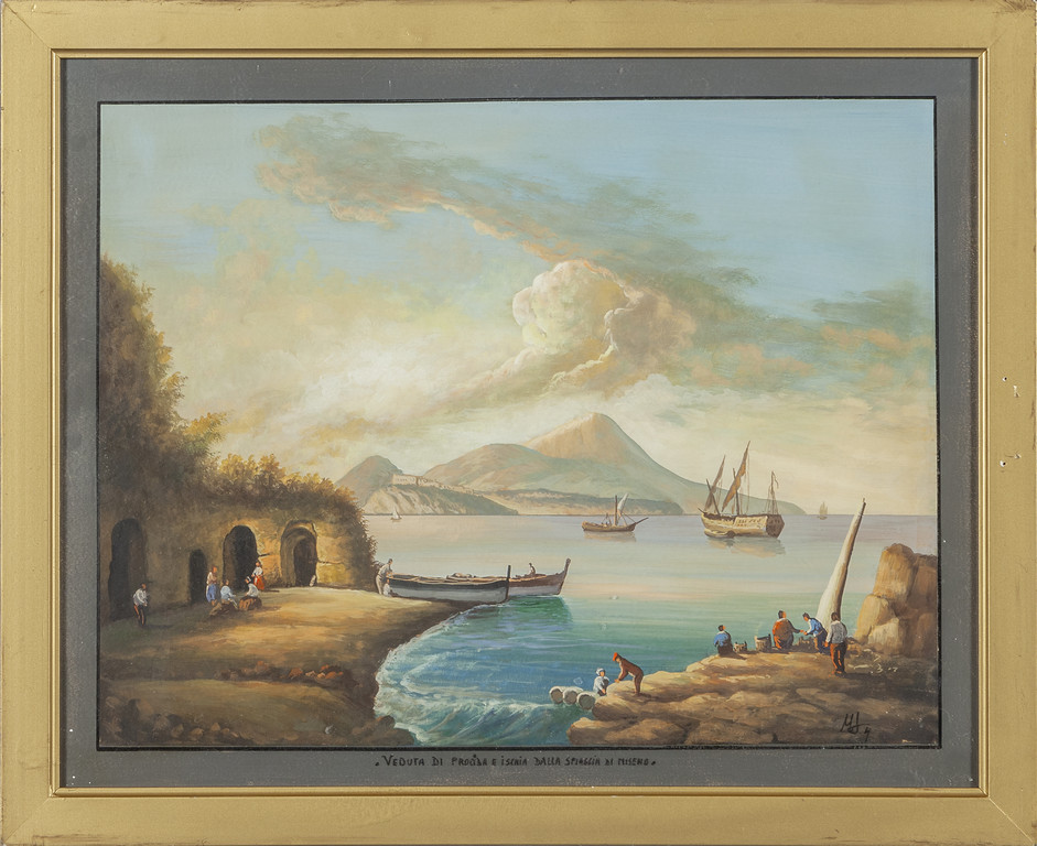 'Veduta di Procida ed Ischia dalla spiaggia di Miseno' gouache