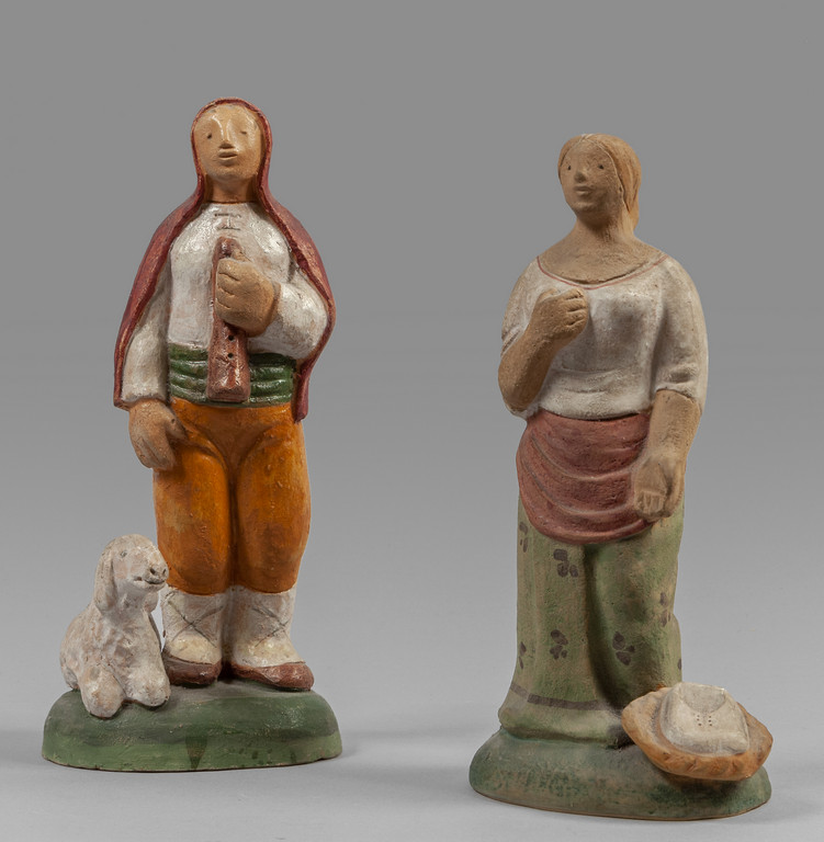 Due statuine in terracotta policroma raffiguranti pastori