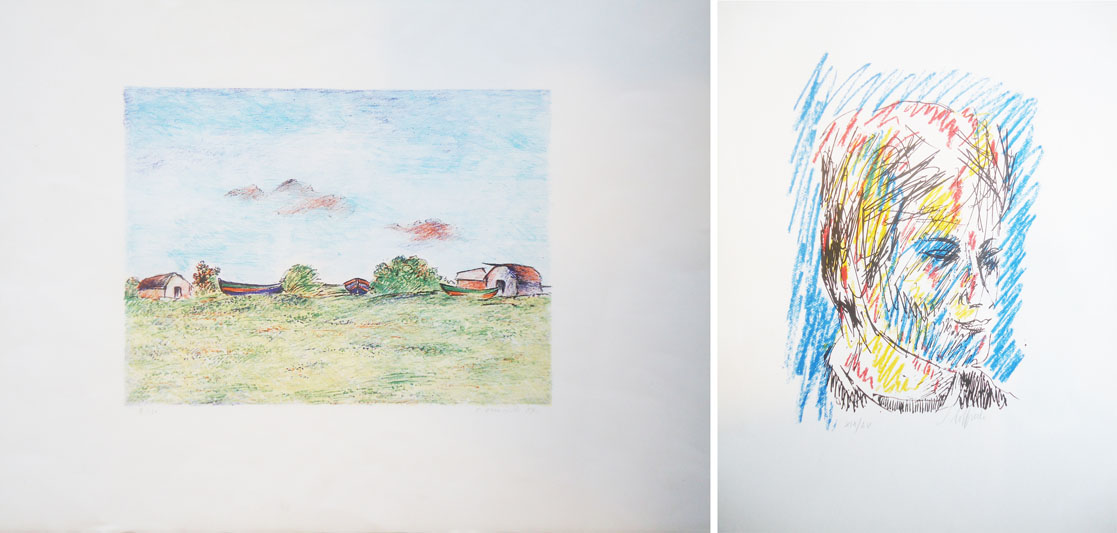 Omiccioli Giovanni, Loffredo Silvio Lotto unico di due Opere - "Giovanni Omiccioli", Paesaggio, 1971, Litografia su carta, cm. 50x70, es. 8/150, firma e data in basso a destra, tiratura in basso a sinistra; - "Silvio Loffredo", Volto, Litografia su carta, cm. 70x50, es. XIX/LV, firma in basso a destra, tiratura in basso a sinistra.