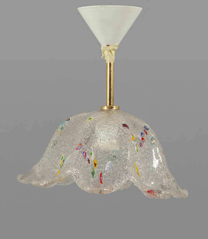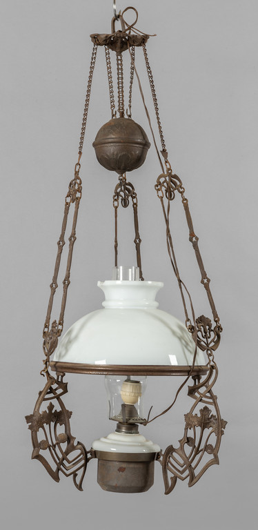 Lampadario con sali-scendi in metallo brunito e vetro e lampadario in vetro con supporto in ottone