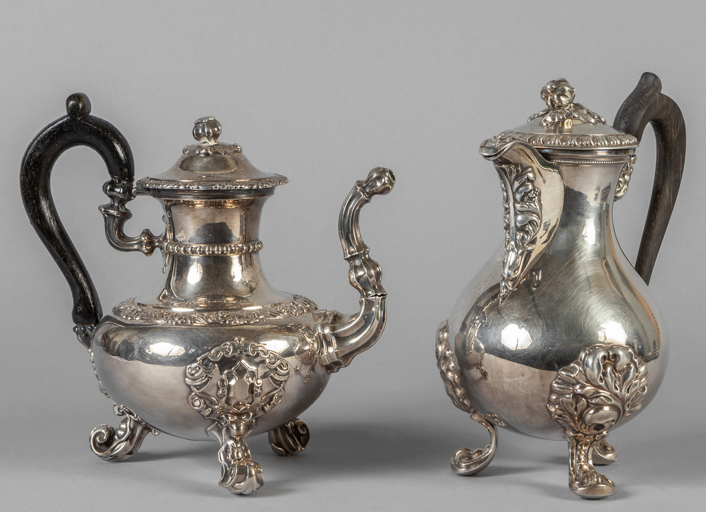 Due caffettiere in argento con manici in legno sec.XIX