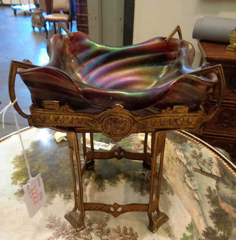 Centrotavola in vetro opalescente e bronzo Austria inizi sec.XX