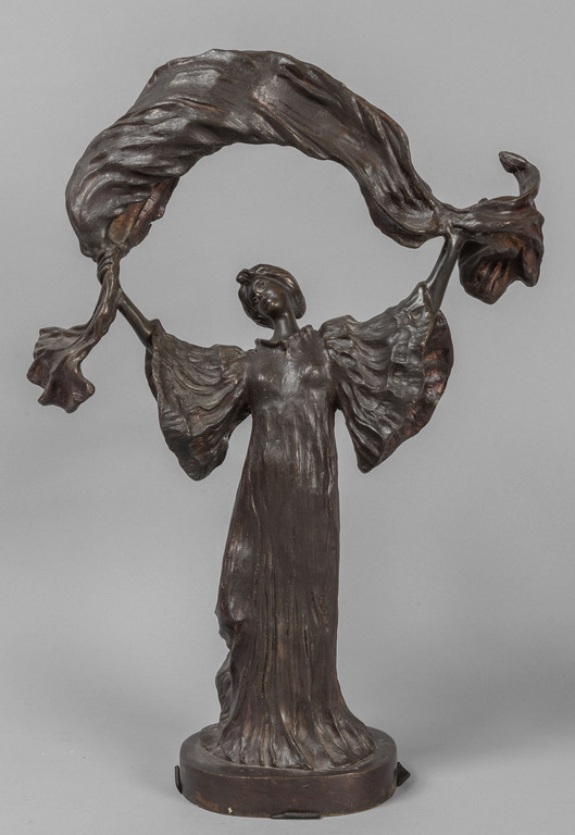 Giovane donna con drappo scultura Liberty in bronzo inizi sec.XX