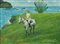 Anonimo Donna a cavallo Olio su tela, cm. 30x40 Firma illeggibile in basso a...