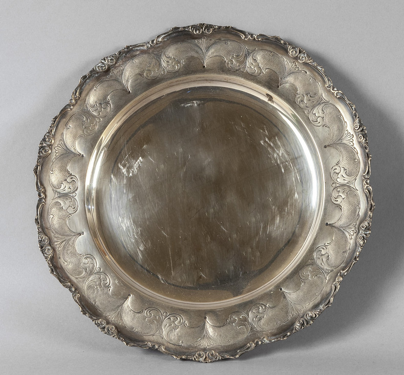 Precedente Lotto 1325 Successivo Aste Boetto - Via Mura dello Zerbino 10R, 16122 Genova Asta di Antiquariato e Arte Orientale Asta di Antiquariato e Arte Orientale venerdì 11 giugno 2021 ore 11:00 (UTC +01:00) OGGETTISTICA Piatto in argento bordo sbalzatodiam.cm.28 gr.650