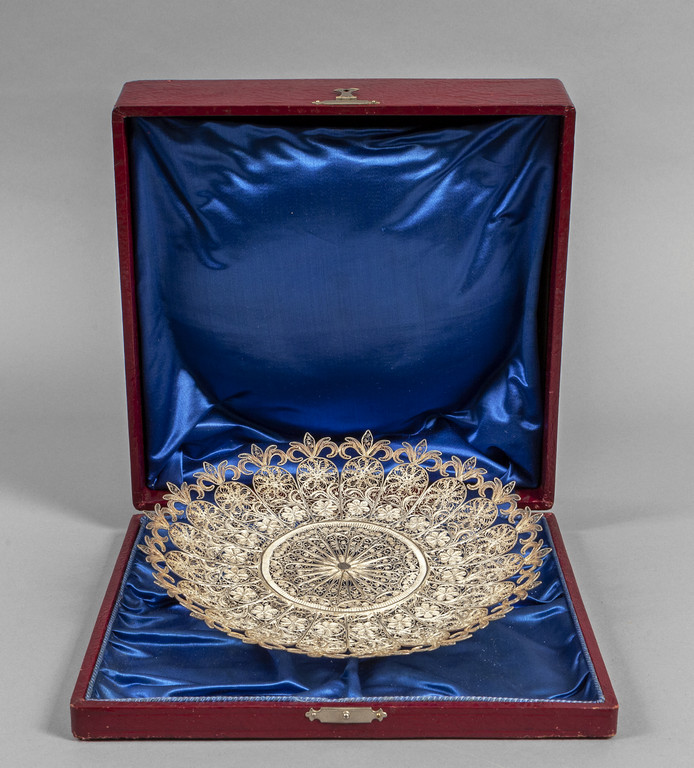 Precedente Lotto 1327 Successivo Aste Boetto - Via Mura dello Zerbino 10R, 16122 Genova Asta di Antiquariato e Arte Orientale Asta di Antiquariato e Arte Orientale venerdì 11 giugno 2021 ore 11:00 (UTC +01:00) OGGETTISTICA Piatto in filigrana d'argento con custodiadiam.cm.24