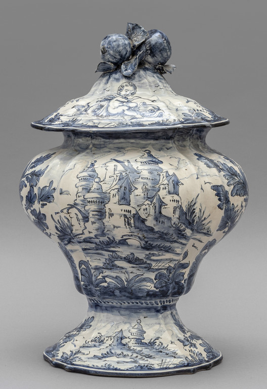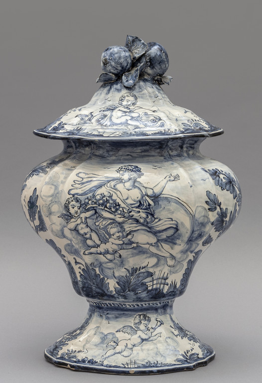 Grande potiche con coperchio in maiolica bianca e blu Albissola sec.XX