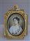 Fanciulla con serto di fiori miniatura di forma ovale f.ta al c. e a ds. cornice in metallo dorato sormontata da corona sec.XX