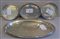 Coppia di sottobottiglie in argento con bordo traforato alzatina ovale analoga e vassoietto ovale in argento