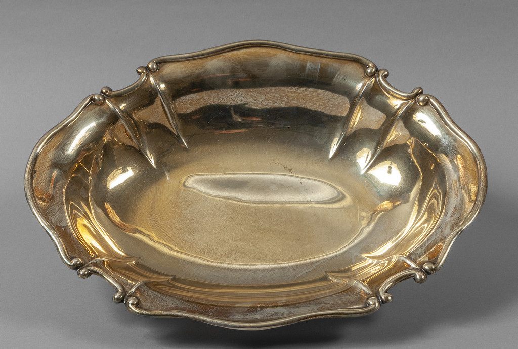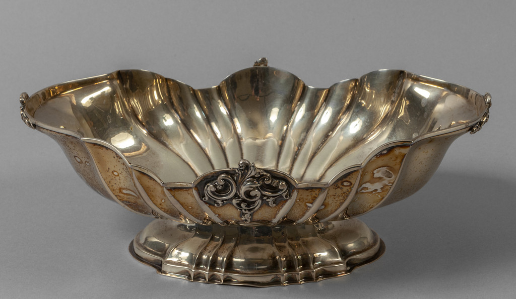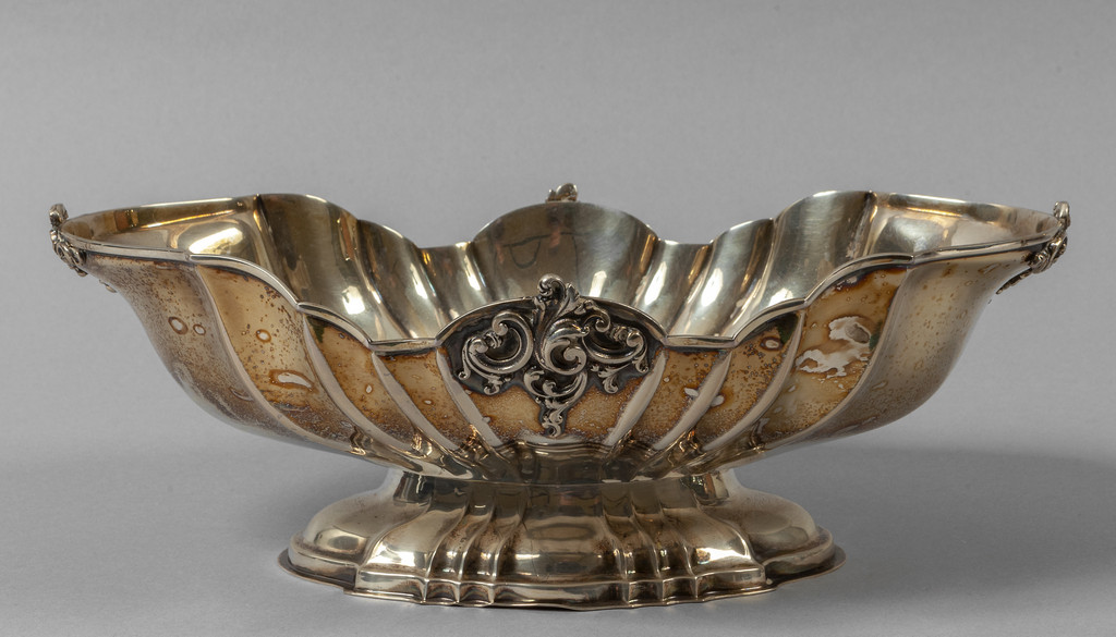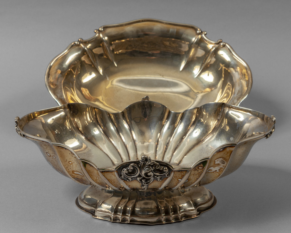 Alzata centrotavola in argento (cm.30x20xh.10 gr.500) e alzata in argento (cm.31x23xh.19 gr.250)