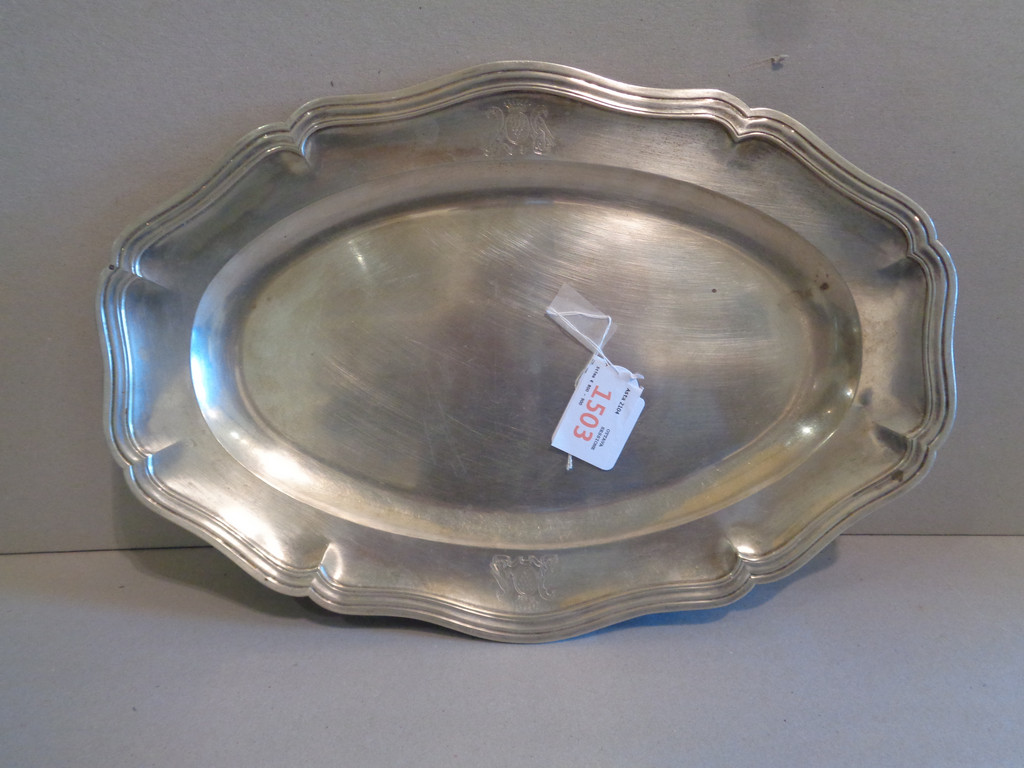 Piatto da portata in argento di forma barocca inciso con stemma nobiliare
