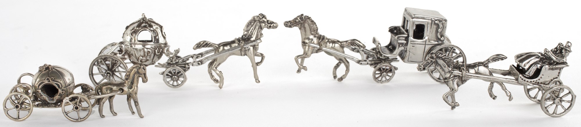 Lotto composto da quattro carrozze in miniatura in argento