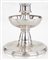 Candeliere in argento caratterizzato da una bobèche raccoglicera di forma semisferica posta nella parte mediana del fusto; base circolare, 11,5x10,9 - gr. 149