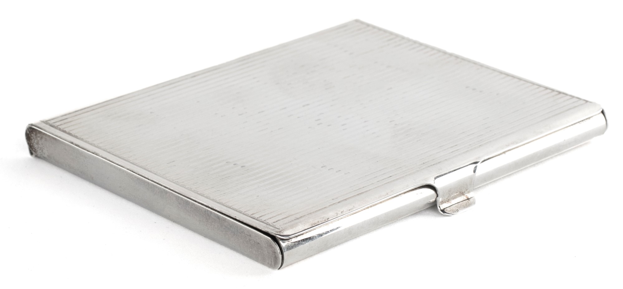 Portasigarette in argento con coperchio decorato da sottili righe parallele, 0,7x10x8,3 - gr. 100
